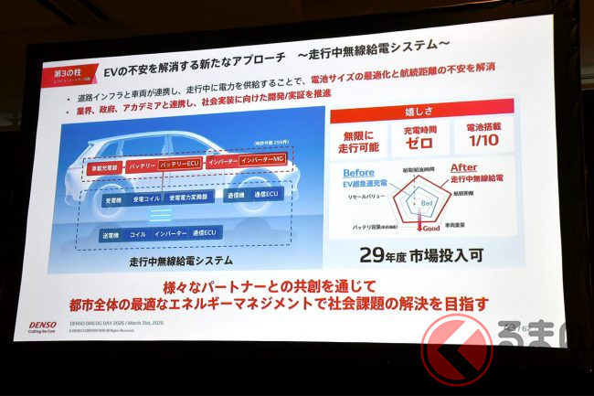 デンソー、2030年に向けたビジョン「CORE 2030」発表! 注目の「走行中給電」の進捗は? EVの課題解決、29年度目指す