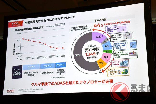 同氏は「一般道のわずか2%程度に敷設すれば、行きたい場所へはほぼ行けるようになるという試算があります」と述べ、特に交差点の手前など、車両の滞在時間が長い場所に重点的に配置する効率的な手法を紹介しました。