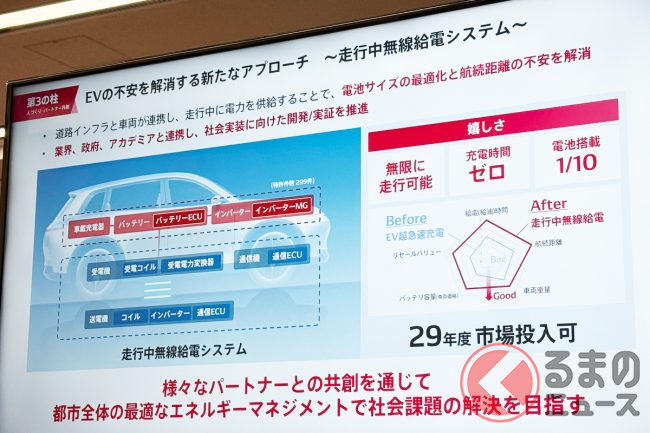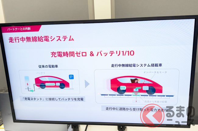 当日は会見と合わせて、技術・モノづくりをテーマとした説明会も開催。次世代のモビリティ社会を支える基幹技術として「走行中無線給電システム」の詳細が明かされました。