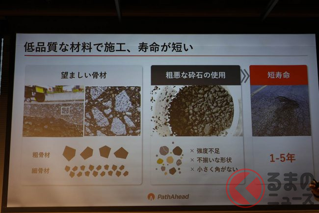 これは、通常10年で設計される日本の道路に置き換えた場合、20年以上の寿命が期待できることを示唆しています。
