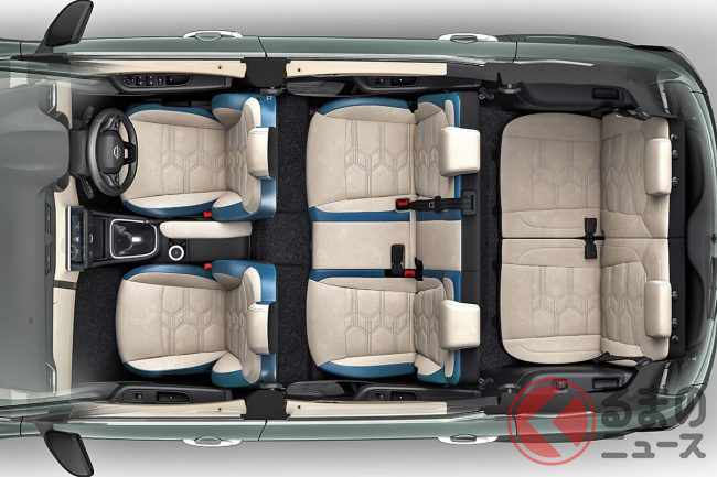 室内は現代のインドの家族向けに専用設計されており、シートレイアウトは2-3-2の3列で、乗員数や荷物量に応じて2人乗りから7人乗りまで柔軟なシート構成が可能です。