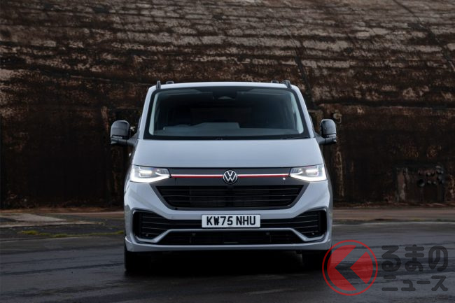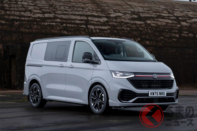 新型「“5人乗り”ミニバン」ついに受注開始! 全長5m級の「トヨタ・アルファード」以上サイズ&“スポーティな”専用エアロ採用! 赤いアクセントもイイVW「トランスポーター スポーツライン」英国仕様とは