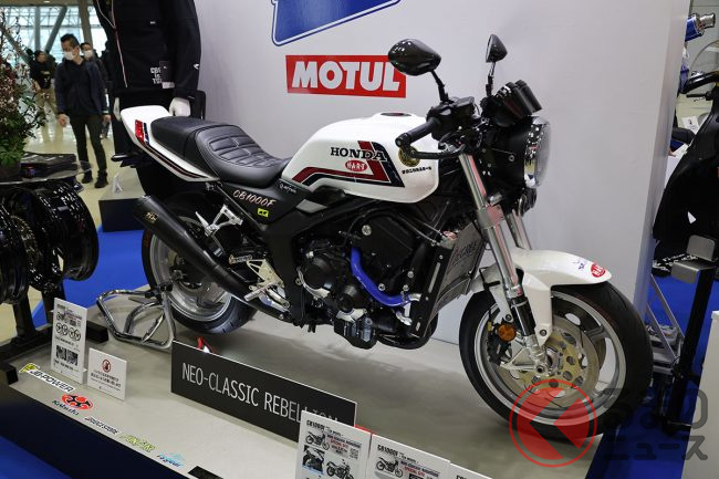 三重県鈴鹿市に本拠地を置くモーターサイクル用パーツメーカー兼レーシングチームの「TSR(テクニカル・スポーツ・レーシング)」は、2026年3月27日から開催された「東京モーターサイクルショー2026」の会場で、ホンダ「CB1000F」用のカスタムパーツを装着した車両を展示しました。
