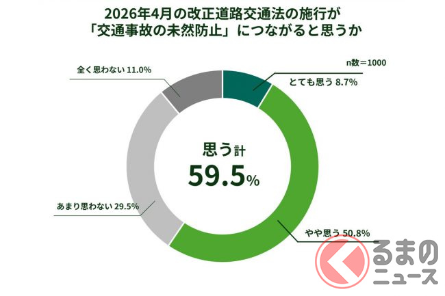 「改正道路交通法は交通事故の未然防止につながると思う」と答えた人が59.5%だった一方、約4割が効果に懐疑的という結果となりました。
