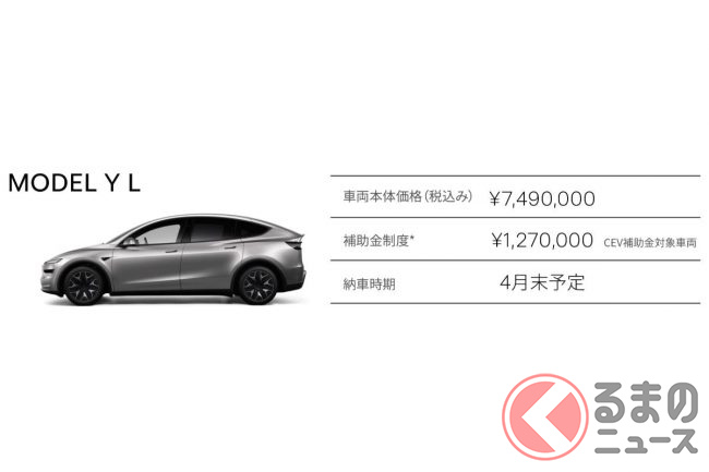 新型「高級3列6人乗りSUV」日本初公開! 2列目独立キャプテンシート採用!? 0-100加速5秒のテスラ「Model Y L」発売