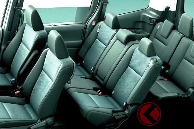 7人乗り仕様のセカンドシートには、キャプテンシートが採用され、シートを横にスライドさせることなく745mmのストレート超ロングスライドが可能。8人乗り仕様では、6:4分割チップアップシートにより705mmの超ロングスライドが実現されました。