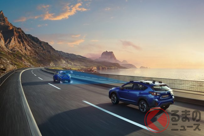 新型クロストレックは、運転支援システム「アイサイト」を搭載し、プリクラッシュブレーキ(PCB)や全車速追従機能付クルーズコントロール(ACC)、車線中央維持/先行車追従操舵機能、ドライバーモニタリングシステム(DMS)など、全方位のアクティブセーフティ機能が網羅されています。