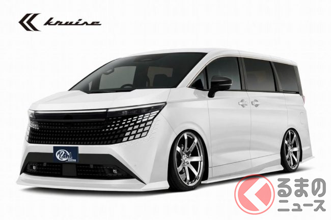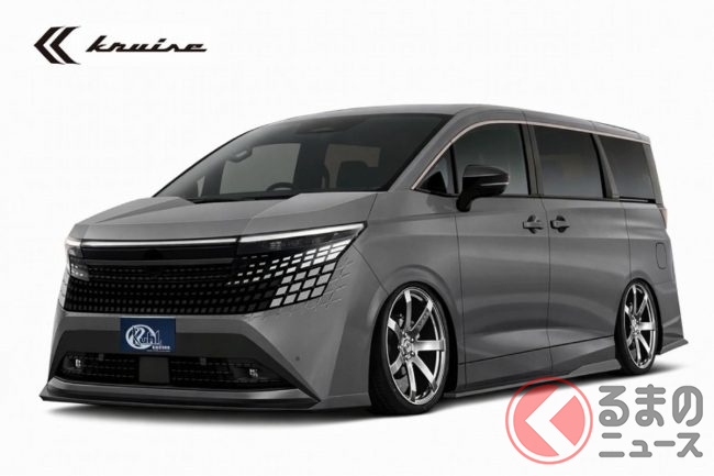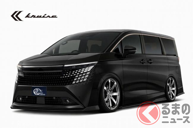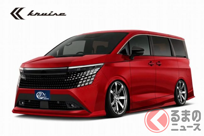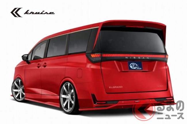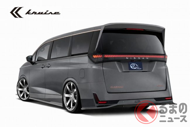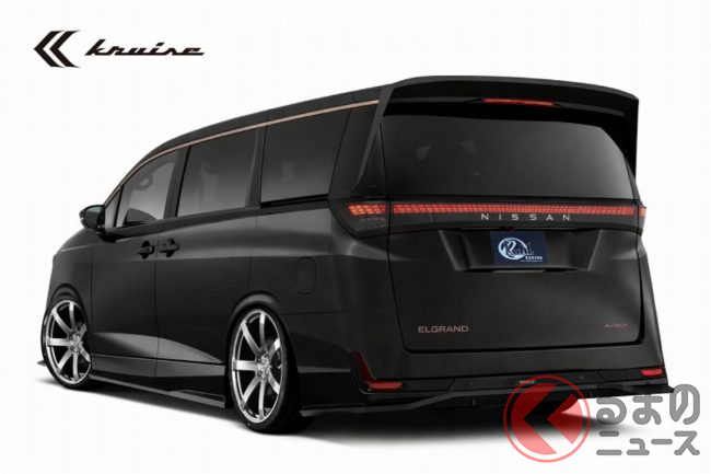 “16年ぶり全面刷新”の日産「“新型”エルグランド」“迫力エアロ仕様”が初公開! 元祖「キングオブミニバン」をスポーティ&ベタベタに! KUHL JAPANのKRUISE登場へ