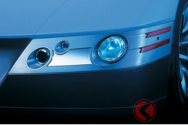 フロントマスクも独創的です。径の異なる複数の丸形ランプを組み合わせ、グリルを持たない構成を採用しています。
