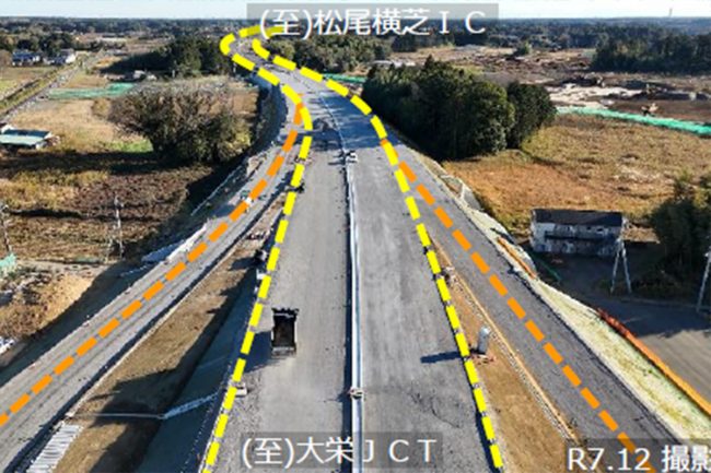 現在、千葉県内の大栄JCTから松尾横芝ICまでの区間(延長18.5km)で整備が進んでおり、全線開通に向けた工事が本格化しています。