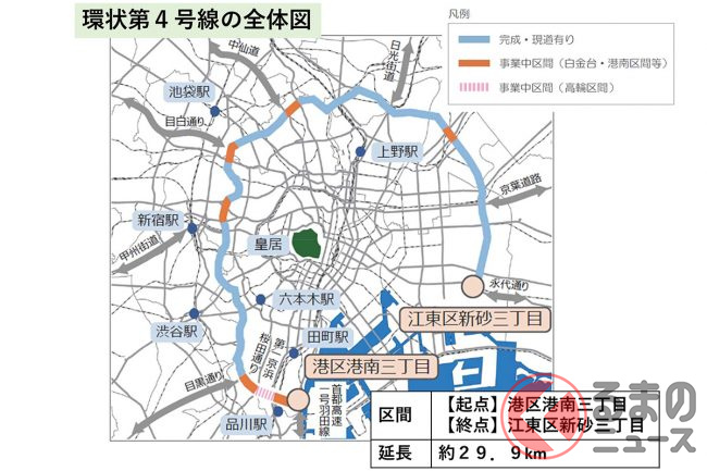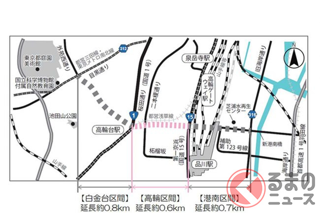 品川駅周辺の東西を直結! 国道1号と国道15号を結ぶ「環状4号線」 高輪エリアの新ルート工事進む! 未整備区間の現状は?