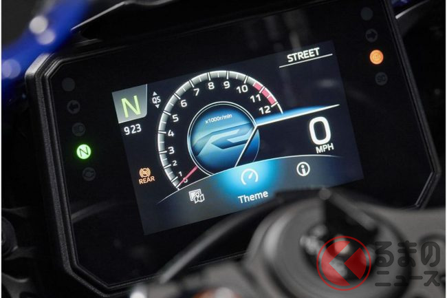 専用アプリと連携することで電話の着信通知やナビゲーション機能を利用できるほか、「Y-TRAC Rev」というアプリを使えば、サーキットでのラップタイムや車両の走行データをスマートフォンで解析できるなど、現代のバイクならではの“つながる”機能も充実しています。