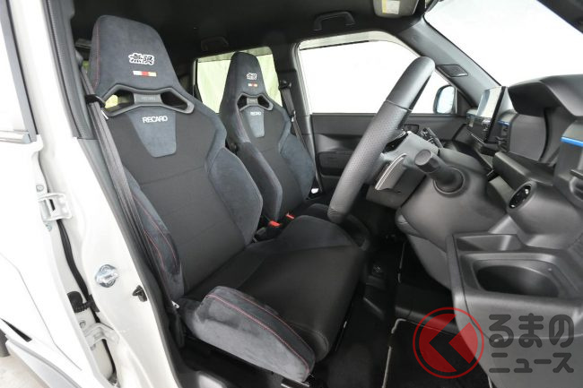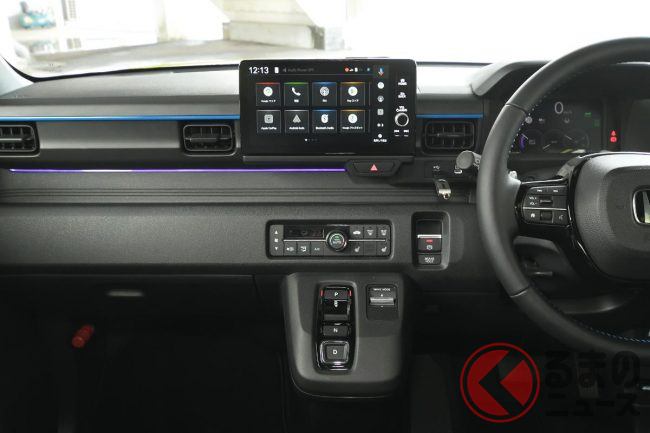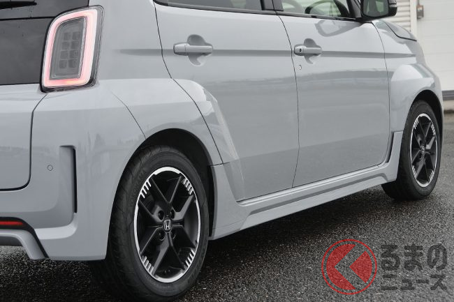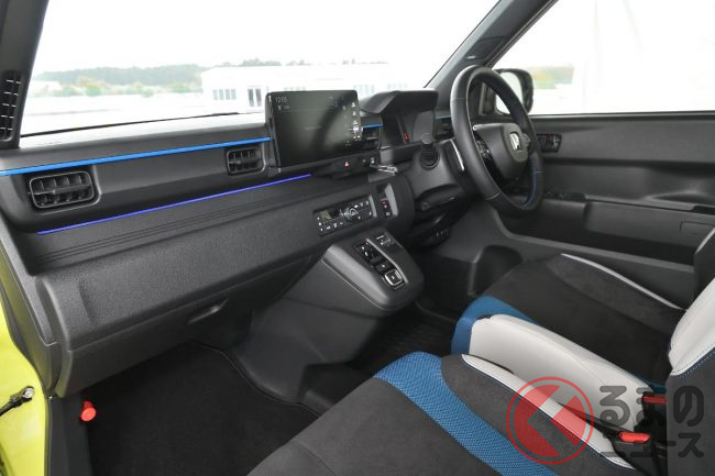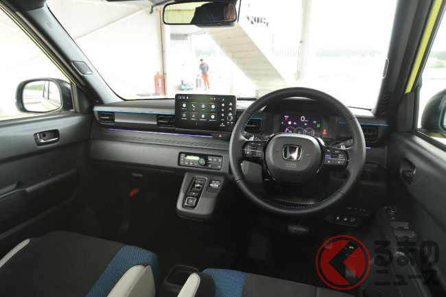 加えて、薄型バッテリーを床下中央に配置した低重心設計に加え、ベースとなった「N-ONE e:」のプラットフォームからフロントトレッドを50mm拡幅した専用シャシを採用することで、接地点横剛性はホンダの軽ハイトワゴン「N-ONE RS」比でフロントが約37%、リアが約57%向上しています。