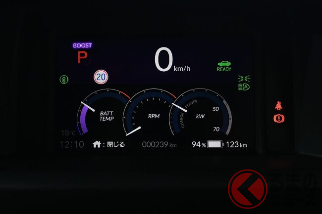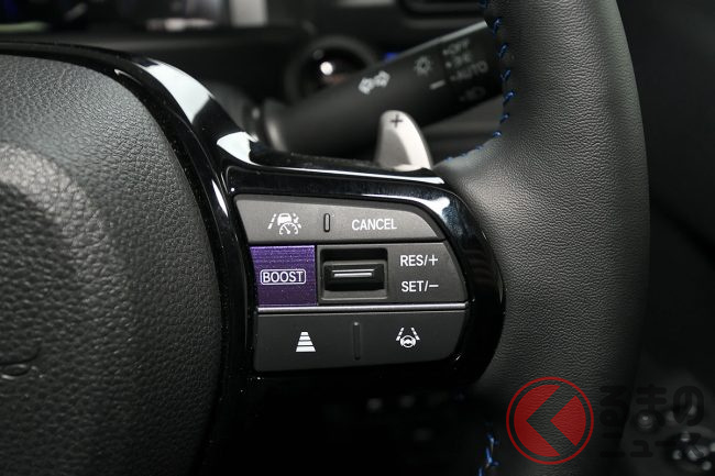 新型スーパーワンの走りを象徴するのが、専用開発の「BOOSTモード」です。スイッチを押した瞬間、最大出力は通常時の47kW(約64馬力)から70kW(約100馬力)へと1.5倍拡大され、パワーユニットの性能が最大限に引き出されます。