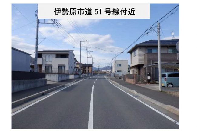 この路線のうち、伊勢原市の日向地区を通る区間は住宅が建ち並んでおり、大型車も含めた交通量が多い状況でした。