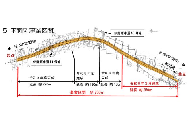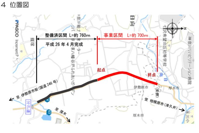 残る厚木市境までの約700m区間(日向工区)については2010年より事業に着手。