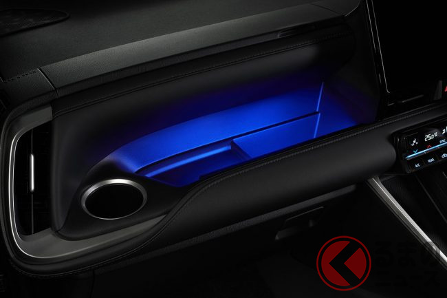 内装用には、助手席オープントレイを彩る「マルチカラーインテリアイルミネーション」(5万5000円)が加わりました。これは手元の静電タッチパネルを操作することで、7色に加えてグラデーションや明るさを自由に設定できというアイテムで、夜間の車内をより特別感のある空間へと演出します。