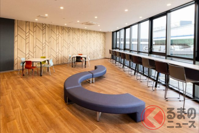 外観はマツダの新世代店舗と同じコンセプトカラーをまとい、マツダの思想の中で学んでいることが自然に意識できるようなデザインとしました。