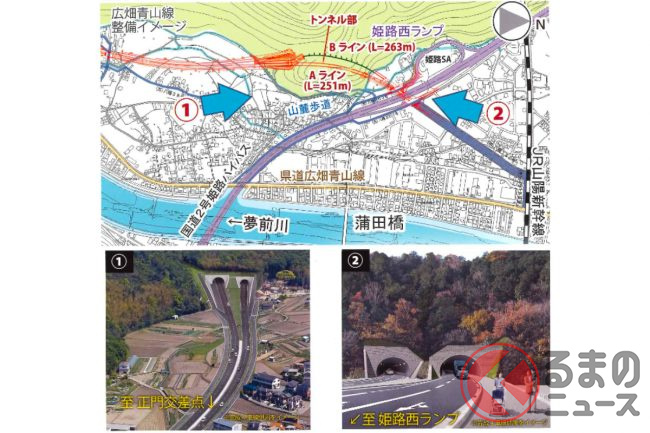 臨海部とバイパスを最短で結ぶ“待望の2.3km” 秀吉軍由来の「俺天下山トンネル」爆誕! 姫路の「広畑青山線」4月26日に開通へ