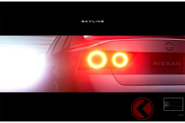 日産「新型スカイライン」世界初公開! 日産の「源流と魂の象徴」となる「スポーツセダン」は“歴代オマージュ”デザイン採用! 長期ビジョン発表でティザー画像を披露