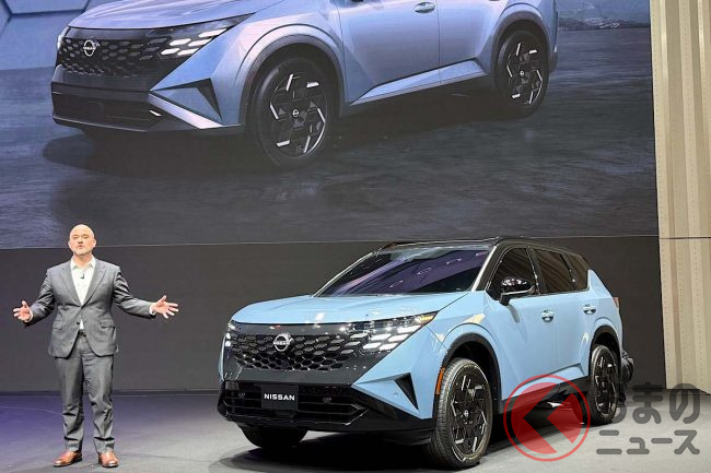 日産「新型エクストレイル」世界初公開! “4年ぶり全面刷新”で「エルグランド顔」&一文字ライト採用! “独自の電動駆動システム”搭載の「ミドルサイズSUV」登場!