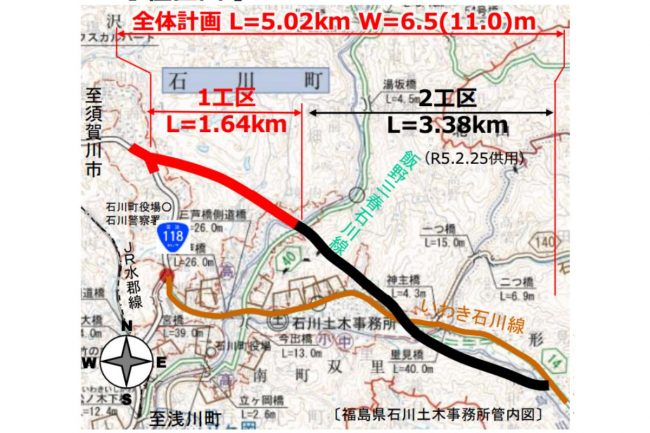 福島“横断”する便利ルートに「バイパス」今夏開通へ! 国道4号・空港アクセスも向上!? 市街地を「サクッと迂回」し国道直結! 県道14号「石川バイパス」夏に全線開通めど