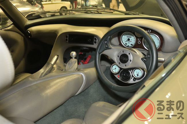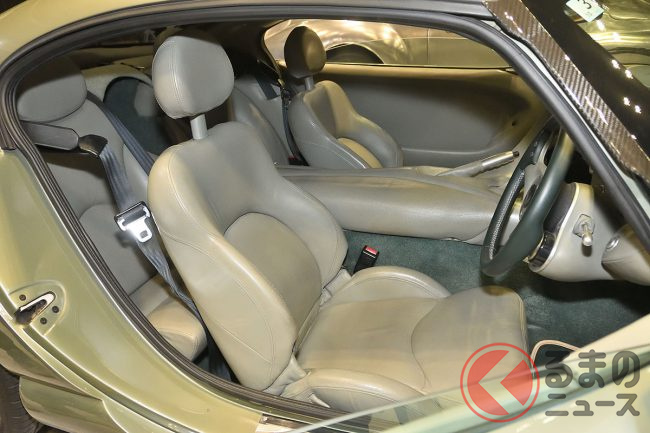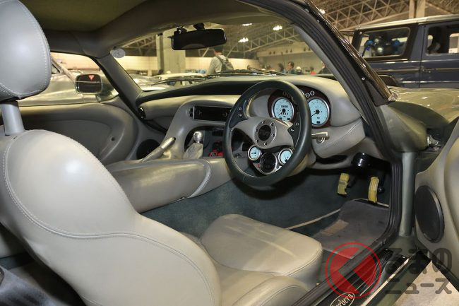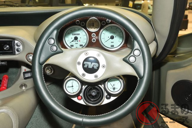 新車1200万円! 斬新「V8搭載4人乗りスポーツカー」実車展示! まさかの「隠し機能」多数採用で「ドアノブ」もない! 曲面デザイン&豪華内装のTVR「サーブラウ」AMCで販売