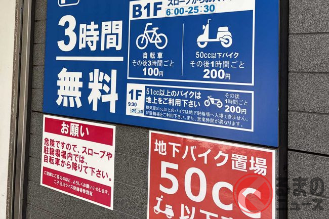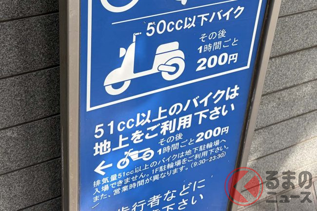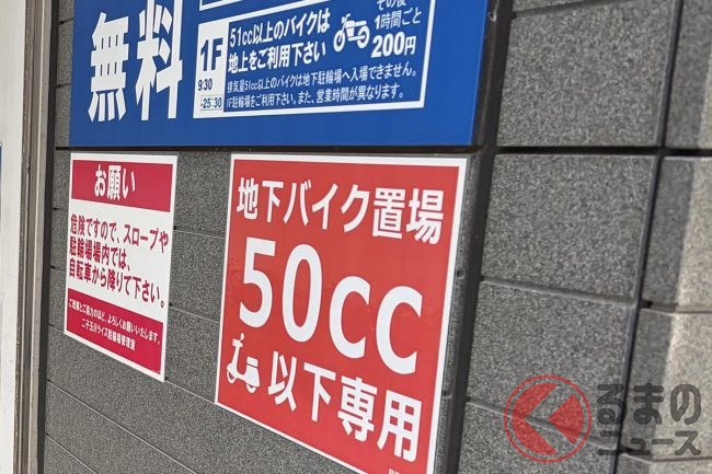 また、東京都世田谷区の比較的新しい大規模商業施設の駐車場警備員に聞いてみると「地下駐輪場に停められるのは看板の案内にある通り、50ccまでとなります」と話します。