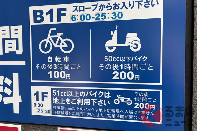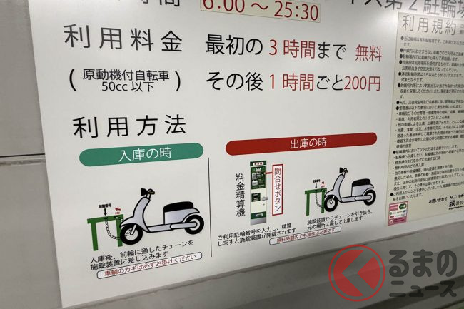 もともと、50cc以下の原付は自転車と同様の駐輪場を利用することができました。