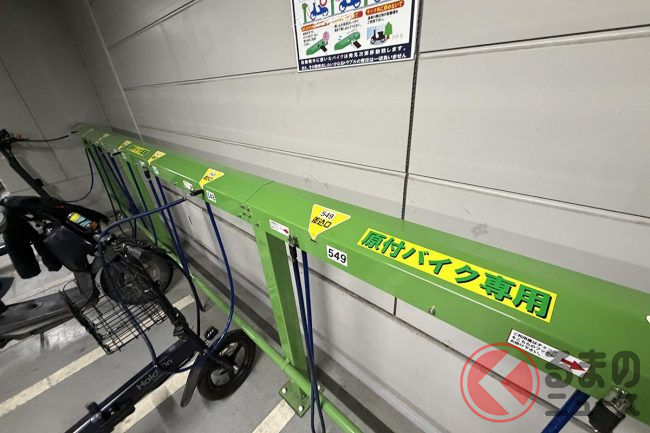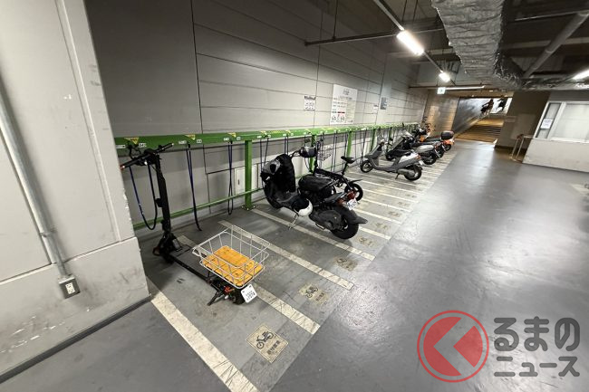 “50cc以上”なのに“原付免許”で乗れる「新基準原付」は屋内駐輪場に停められない!? 車体は大きくても“白ナンバー”で扱いは“原付”? 悩ましい駐輪場事情