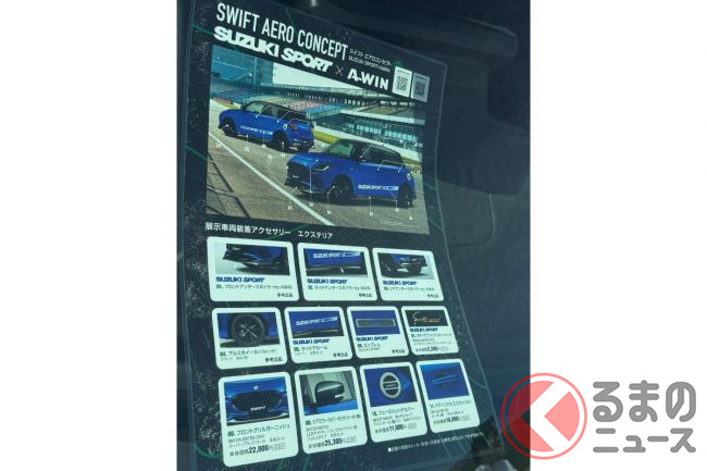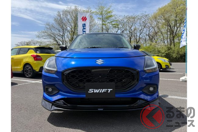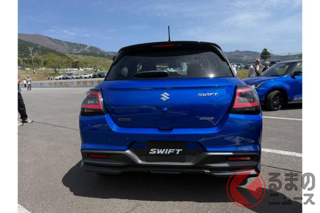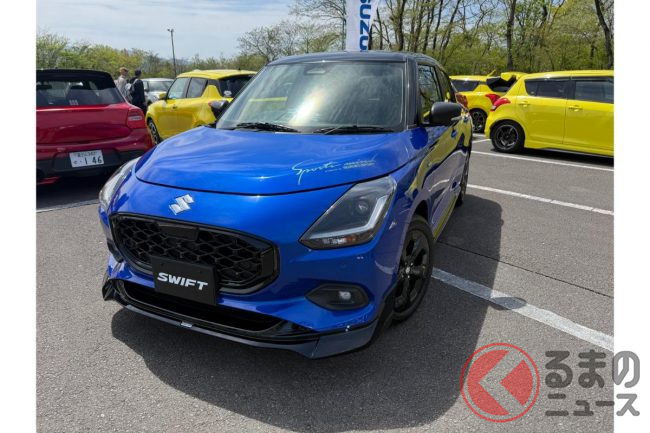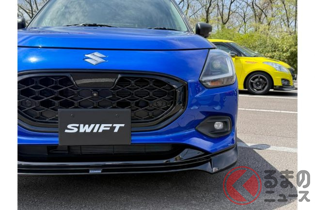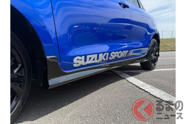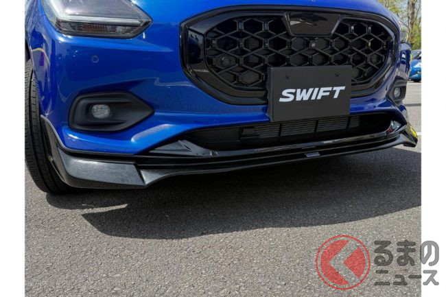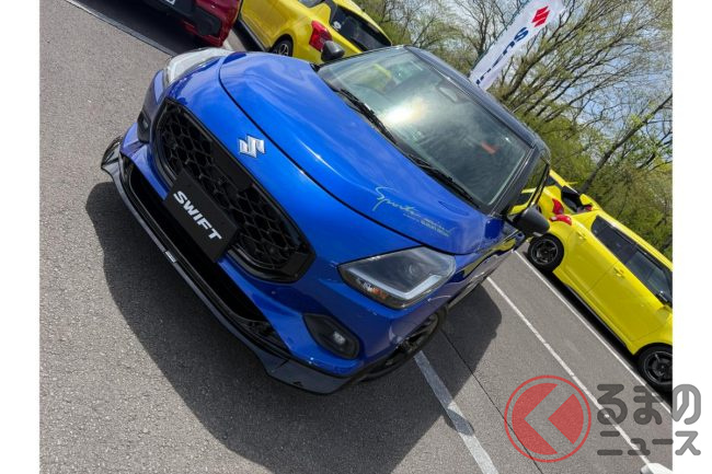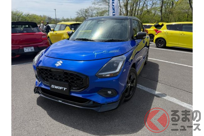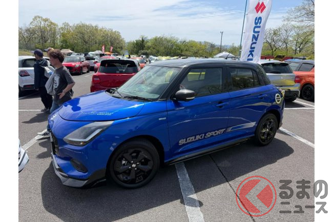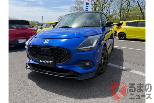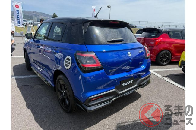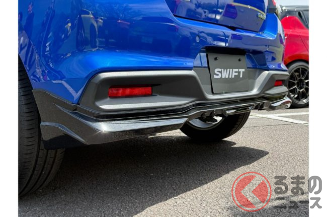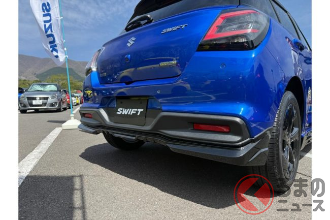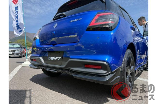 スズキ「小さなスポーツ仕様」初公開! 市販化は? 黒パーツ&「SUZUKI SPORT」エンブレム付与! スイフトエアロ仕様の反響上々で今後に期待