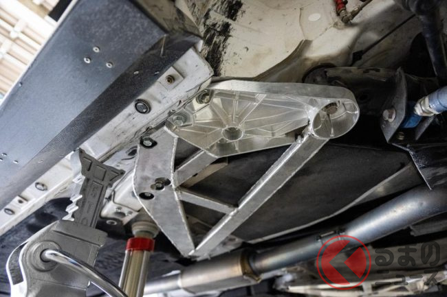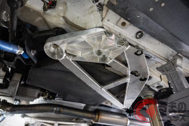片側50mmほど拡幅したボディに合わせ、ロアアームやアップライトもワイドボディ用に専用品を制作しています。