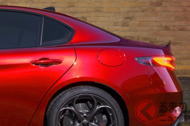 全長4.6mの「“後輪駆動”セダン」に注目! 「スカイライン」より“ちょい小さいサイズ”の「高性能モデル」! V6ツインターボ搭載のアルファロメオ「ジュリア クアドリフォリオ」どんなクルマ?