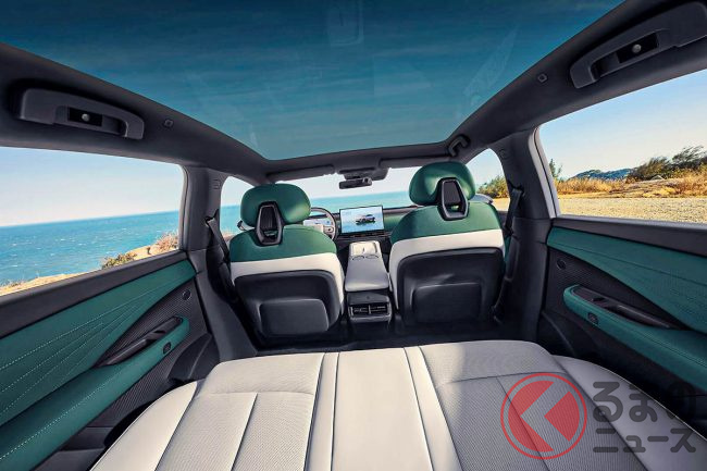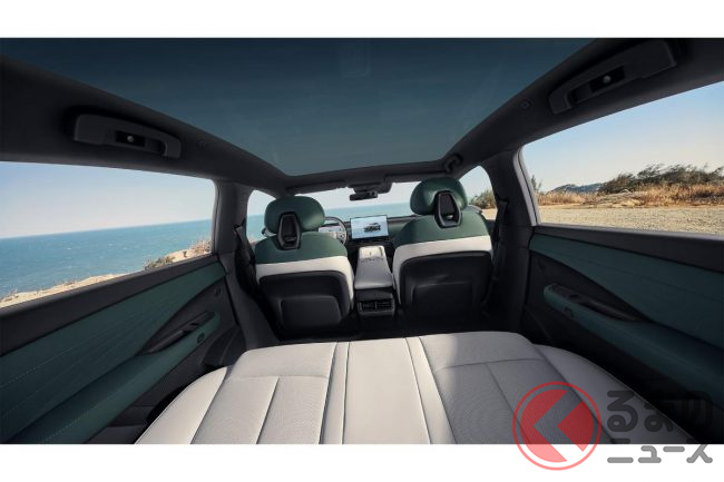 インテリアは、上質かつクリーンな雰囲気で、前席にはAIにより乗員の体形に合わせてシートを調整する「ゼロプレッシャーシート」を、ルーフには全面ガラスを採用します。