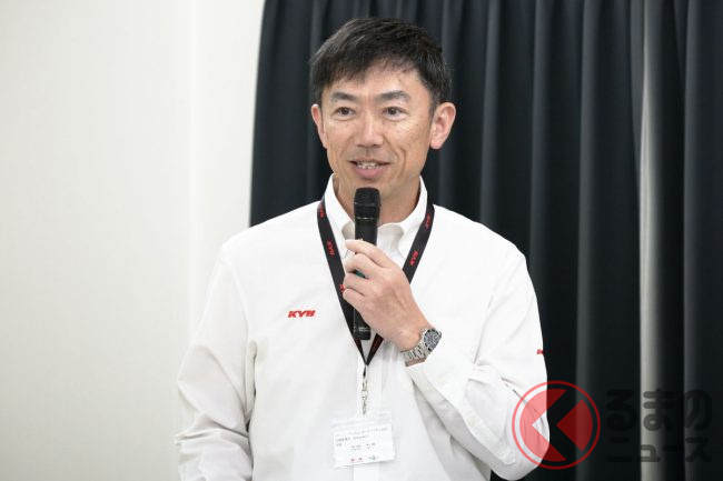 まずは、カヤバ オートモーティブコンポーネンツ事業本部 四輪事業部 技術統轄部 部長の馬場智彦氏と、技術統括部 電子技術部 第一開発室 専任課長の宮谷修氏による座学説明から。