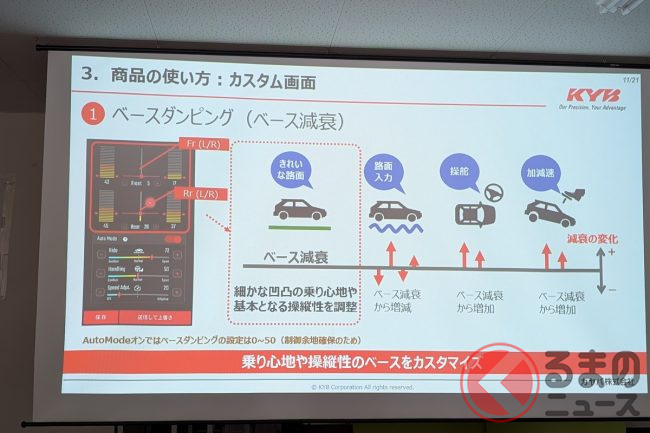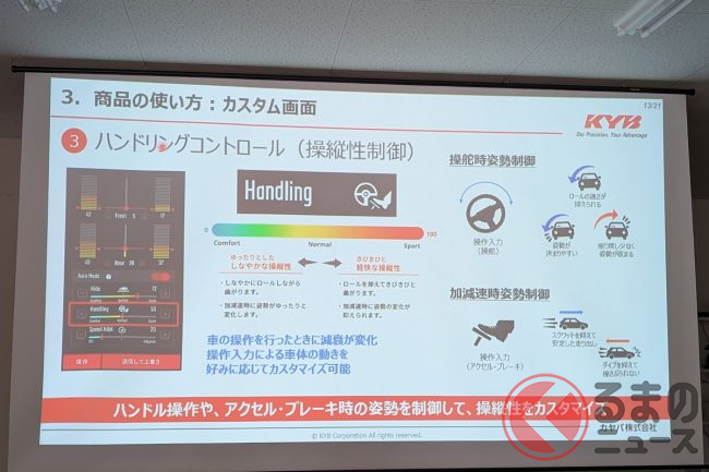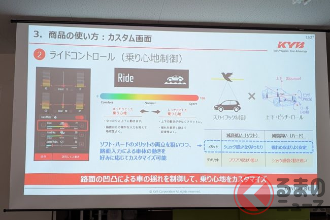 足まわりのセッティングを通じて、手もちの車の乗り味を進化させ、変えられる。そんな愉しさを拡げる点で、SDVのアップデートメニューに発展していくこともありうるでしょう。