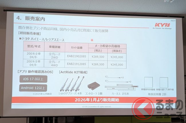 スマホで「ハイエース」の走りが変わる!? “足まわりカスタム”の革命! 路面や好みに合わせた制御ができる”次世代電制サスペンションシステム”「アクトライド」を試してみた