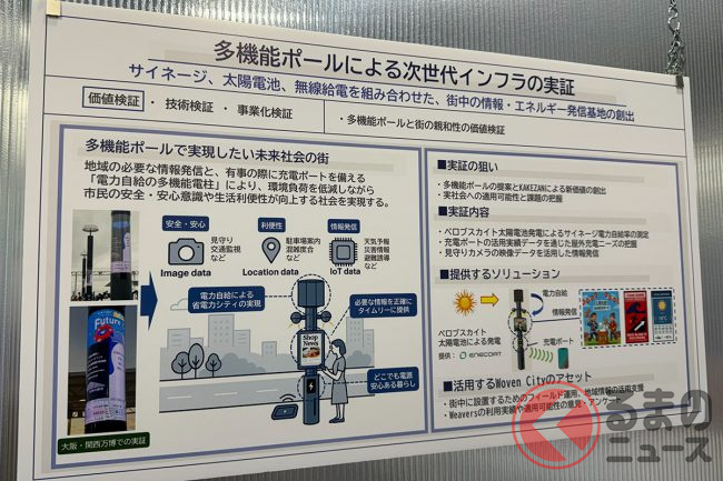 ペロブスカイト太陽電池による電力自給率の測定や、充電ポートの活用実績の把握、見守りカメラ映像を活用した情報発信などを通じて、多機能ポールと街との親和性や、次世代インフラとしての価値を検証します。