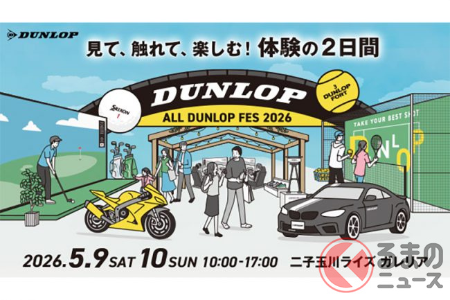 住友ゴム工業は2026年4月24日、ダンロップブランドの体験型イベント「ALL DUNLOP FES 2026」を、5月9日および10日に東京都世田谷区の「二子玉川ライズ ガレリア」で開催すると発表しました。今回で3回目の開催となり、入場は無料です。