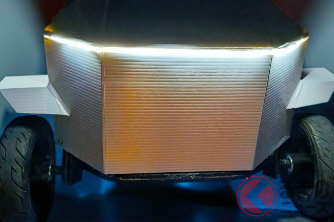 無機質ながらも力強さを感じさせるポリゴン調のフォルムは、従来のマイクロモビリティにありがちだった「可愛らしさ」とは一線を画す、近未来的な存在感を放っています。