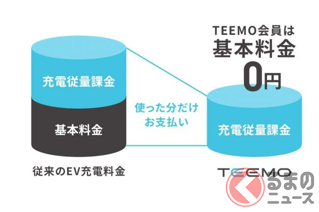 TEEMOの会員プランは、月額基本料金0円というハードルの低さが魅力です。利用料金は出力に応じた従量制で、TEEMO会員なら急速充電(150kW以上)が80円/分、50kW以下なら40円/分から利用可能。