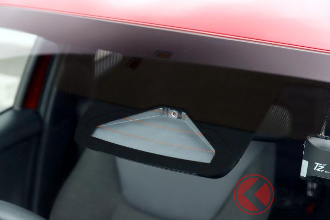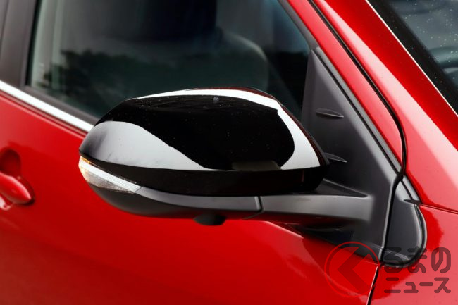 今回借りた実車(Z ハイブリッド車 1.5L・2WD/外板色:センシュアルレッドマイカ)を見ても、赤いボディカラーに対してドアミラーのブラックがアクセントになっています。