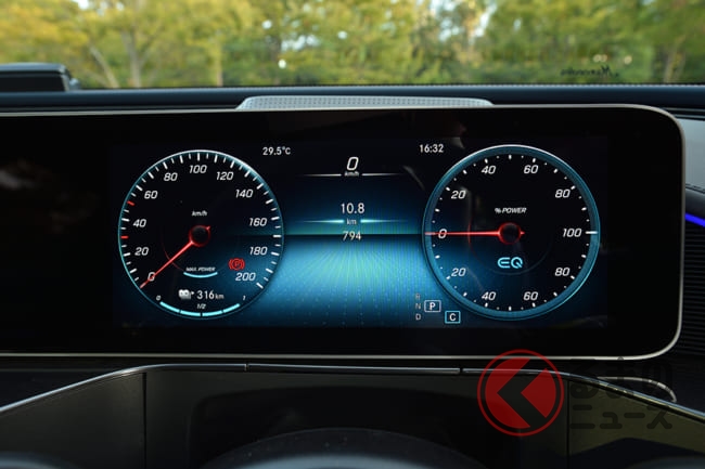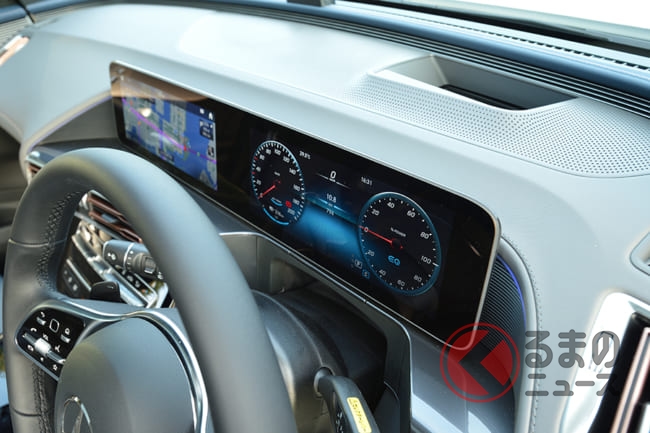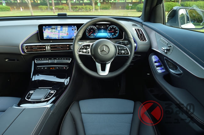 MBUX(MercedesーBenz User Experience)と呼ぶ、音声認識アシスタントで操作できるインフォテインメントも装備されています。もちろんEV用にモディファイされて、航続距離、充電状況、エネルギーフローなどの情報が得られ、充電時間や出発時刻に合わせた空調などの設定もできるようになっています。