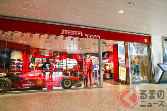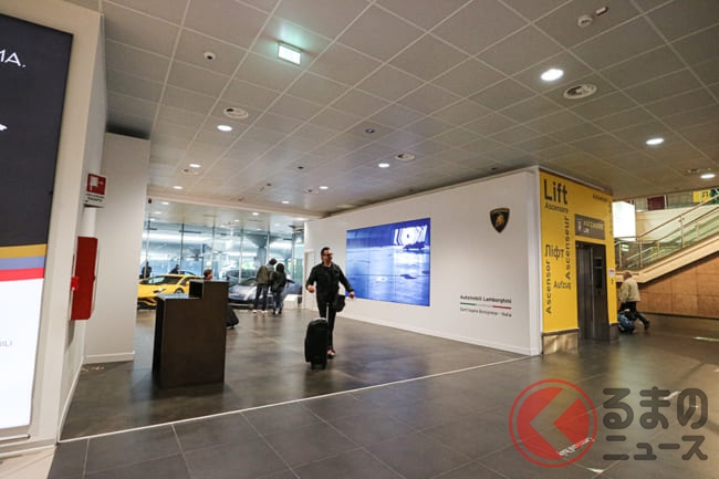 そのため、ボローニャ空港にはランボルギーニのヒストリックカーや現行車が飾られているブースがあるほか、フェラーリ・ストアも入っています。