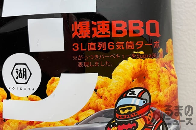 味は「爆速BBQ 3L直列6気筒ターボ」ということで、通常のスコーンの「がっつきバーベキュー」をスープラ風に表現した味になっているということですが、中身はがっつきバーベキューと同じだといいます。
