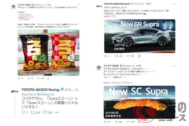 このツイートを見たトヨタのモータースポーツ部門であるTOYOTA GAZOO Racingが、「SUPERスコーン」ではなく「Supraスコーン」になっていることを指摘。