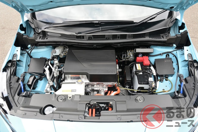 さらにEVには、駆動用のリチウムバッテリーとは別に、エアコンやヘッドライトなどのランプ類、ナビなどの電飾系を動かすバッテリーを搭載しています。