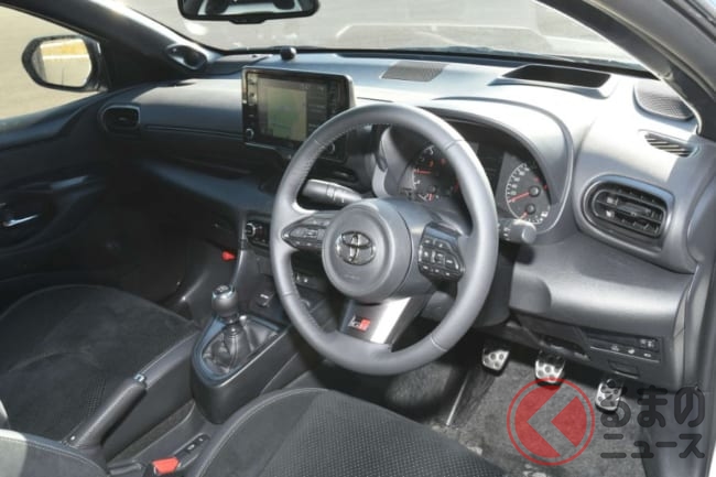 内装デザインは、インパネ形状など基本的な部分は標準モデルの新型ヤリスと共通ですが、専用のステアリングやメーター、スポーツシートを採用。