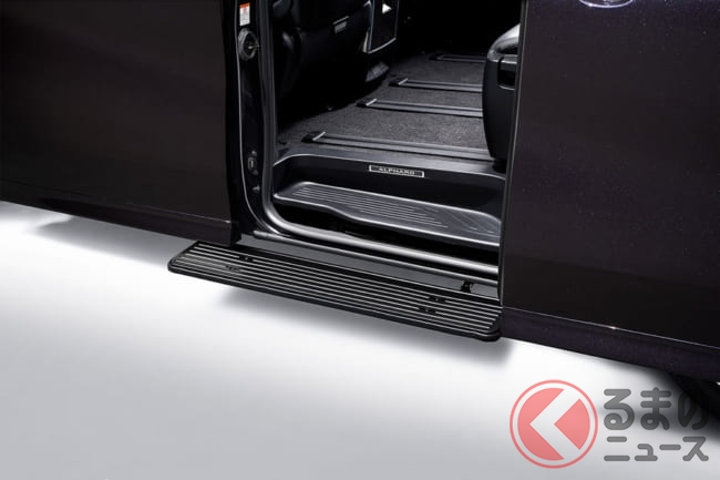 また、バックガイドモニターを全車へ標準装備するとともに、3眼LEDヘッドランプ、ウェルカムパワースライドドア&予約ロック機能の標準装備設定グレードを拡大したほか、スライドドアの開閉に連動し、ステップが展開格納される電動サイドステップ(オプション)を設定しています