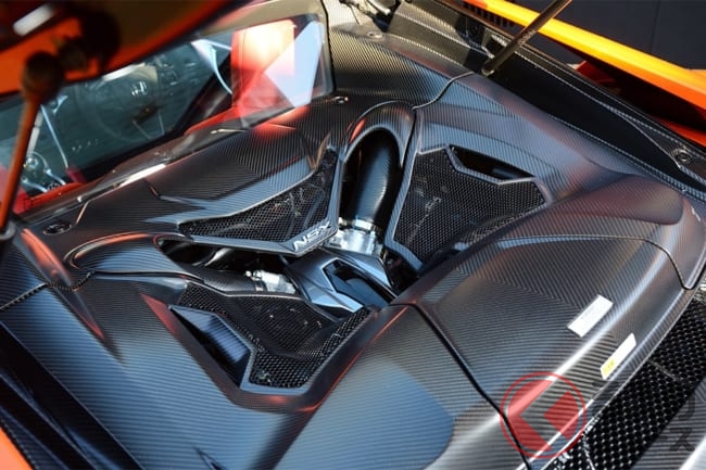 リアミッドシップに縦置きで搭載される3.5リッターV型6気筒ツインターボエンジンは、F1にもエンジンを供給していた英国のコスワースと共同開発し、製造もコスワースがおこなっています。